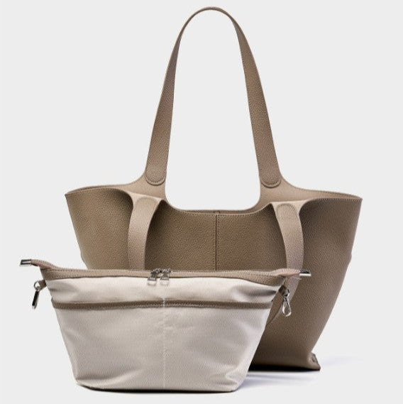 上品な内装ポケット:中のポーチは取り外し可能で、日常の必需品をスマートに収納。スマートフォン、財布、鍵などの小物も整理しやすい工夫が施されています。