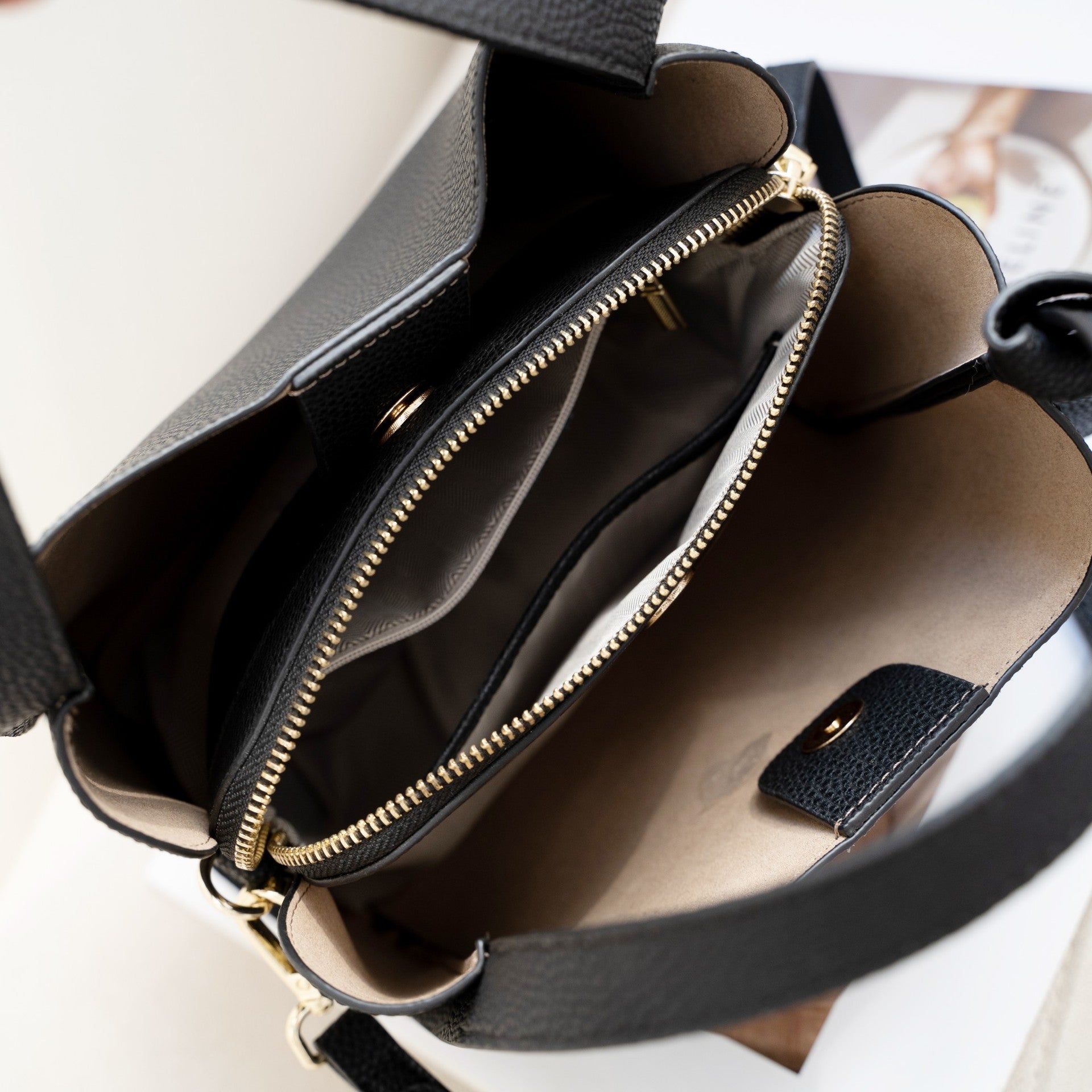 ✔ 使い勝手の良い開閉口&内ポケット – 出し入れやしやすく、ファスナー付きのポケットもあり安心感も◎。