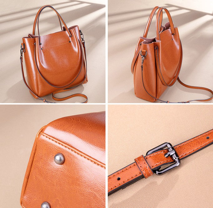 ✔高級レザー使用– 上質な光沢のある本革素材。傷が付きにくく、エイジングも楽しめるバッグです。